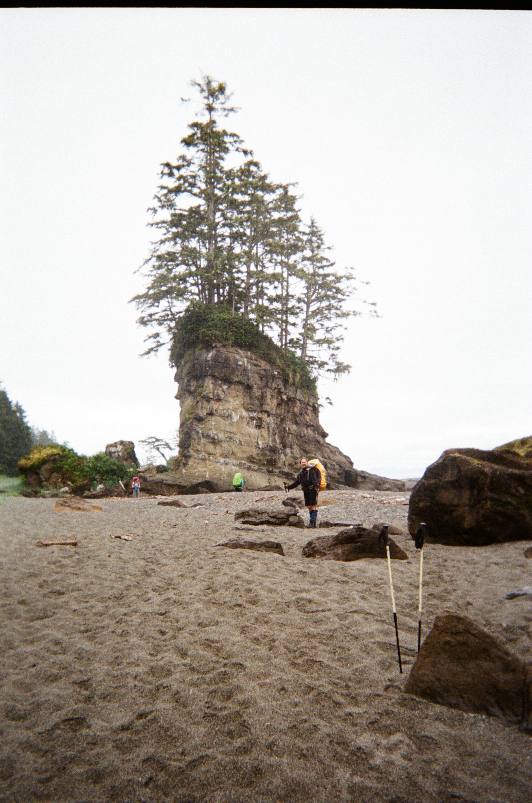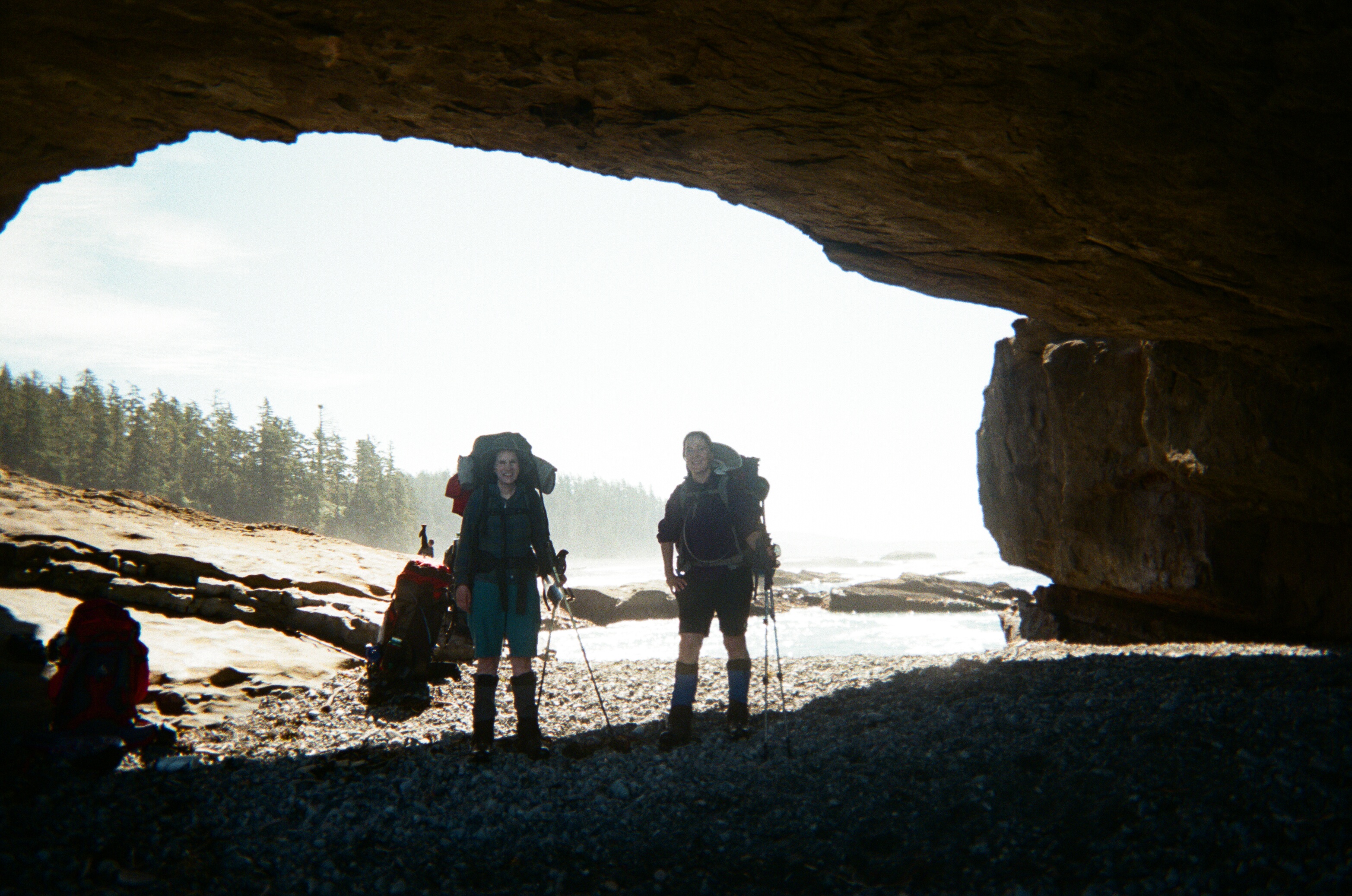 Quarters at Camper Bay were tight; we were woken up early by the voices of seven men who’d slept next to us but for a log. The decision of the day was whether to follow the beach via the fabled Owen Point with its cave and house-sized boulders or to take the inland route.