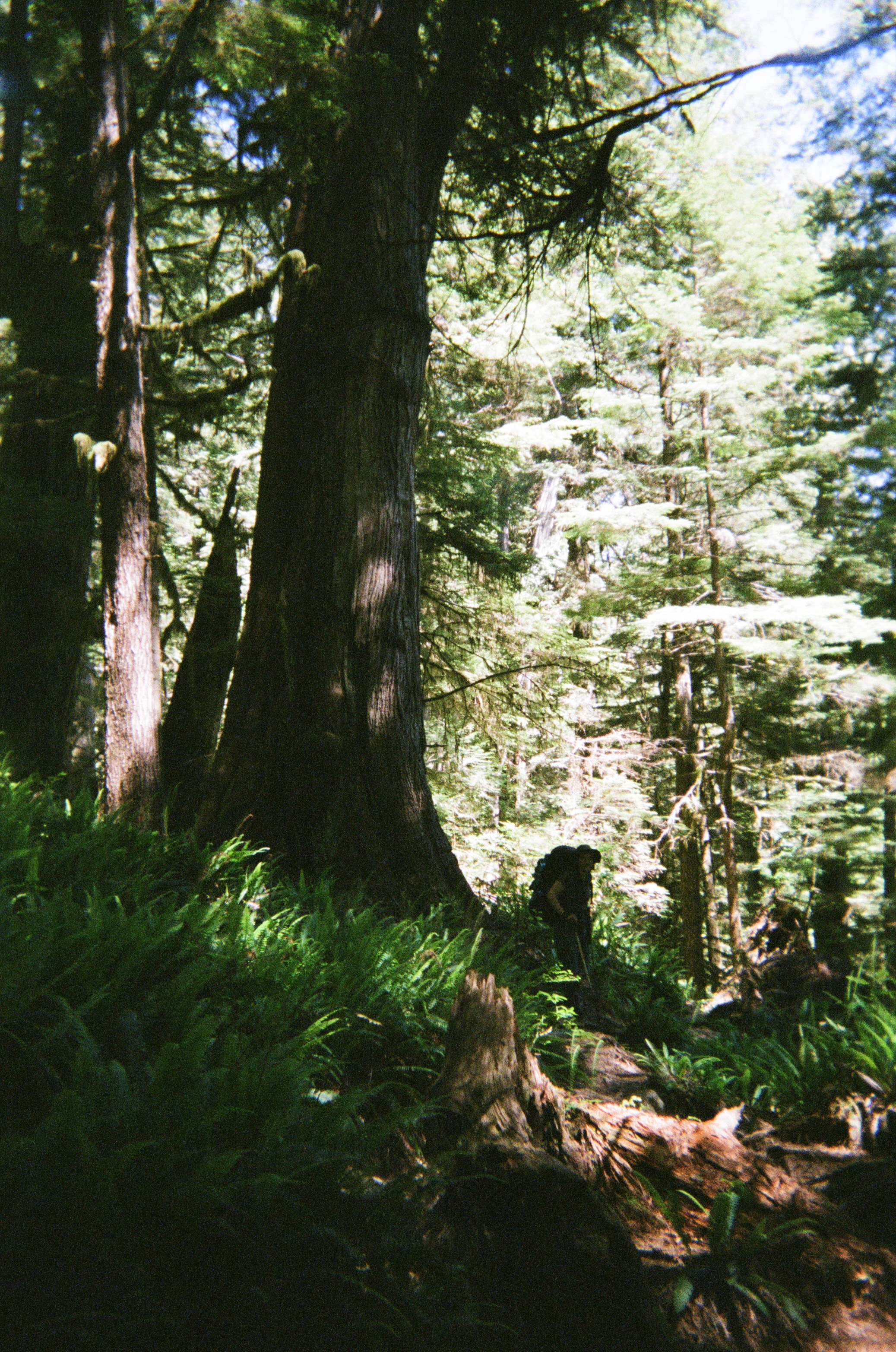 We stayed inland, crossing over many fallen trees and weaving through groves of old growth cedar and ferns. Their massive girth was truly awe-inspiring.