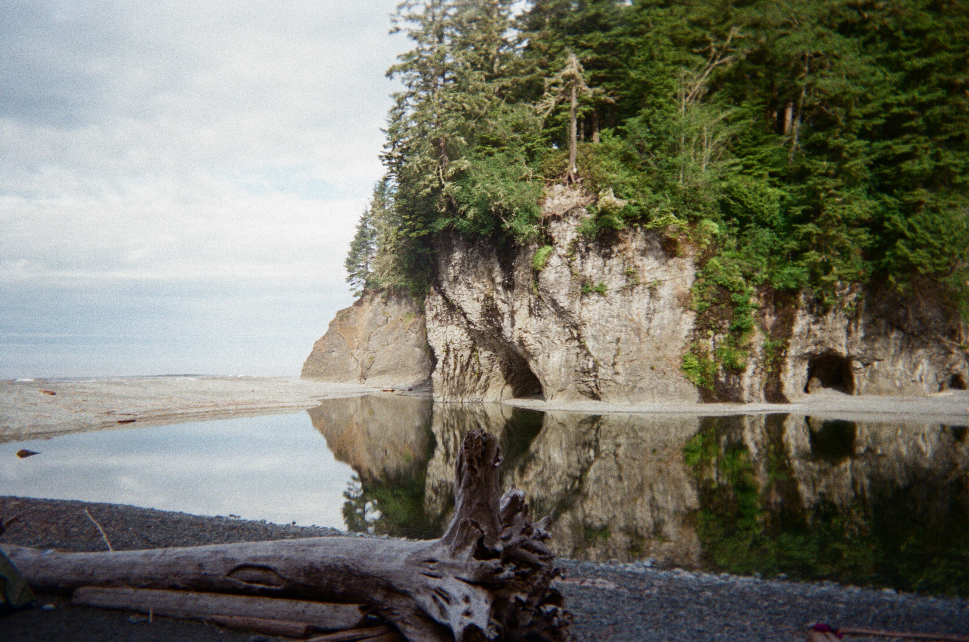 The double caves at the mouth of Walbran Creek and their reflections in the water mesmerized me this morning. Perched on a clifftop tree, an eagle scanned the sea for fish.